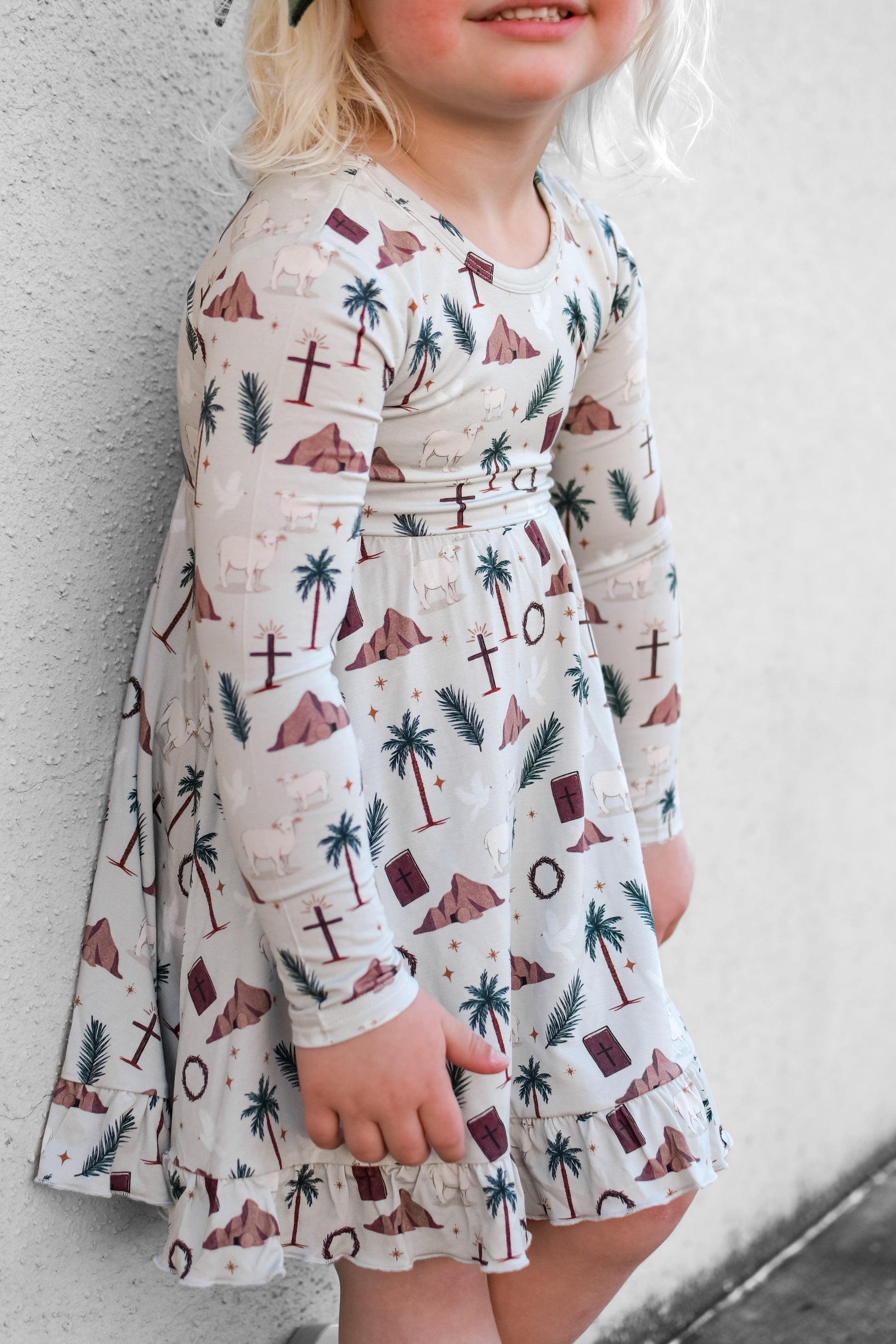 Made for little girls who love to move, laugh, and praise in every moment. Our Bamboo Blend Twirl Dress is beautifully soft, thoughtfully made, and designed for joyful days filled with play and purpose.