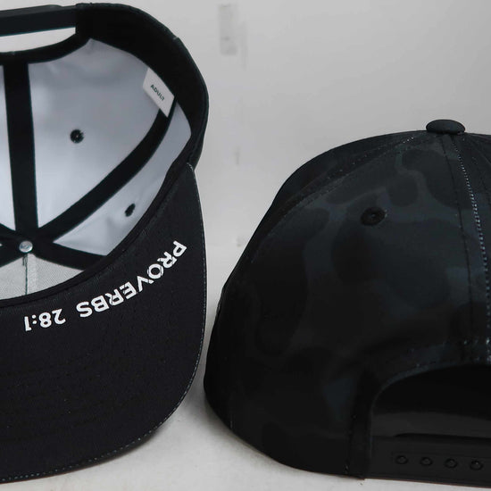 Under the brim: Proverbs 28:1 — “The righteous are as bold as a lion.” A hidden reminder of courage every time you wear it