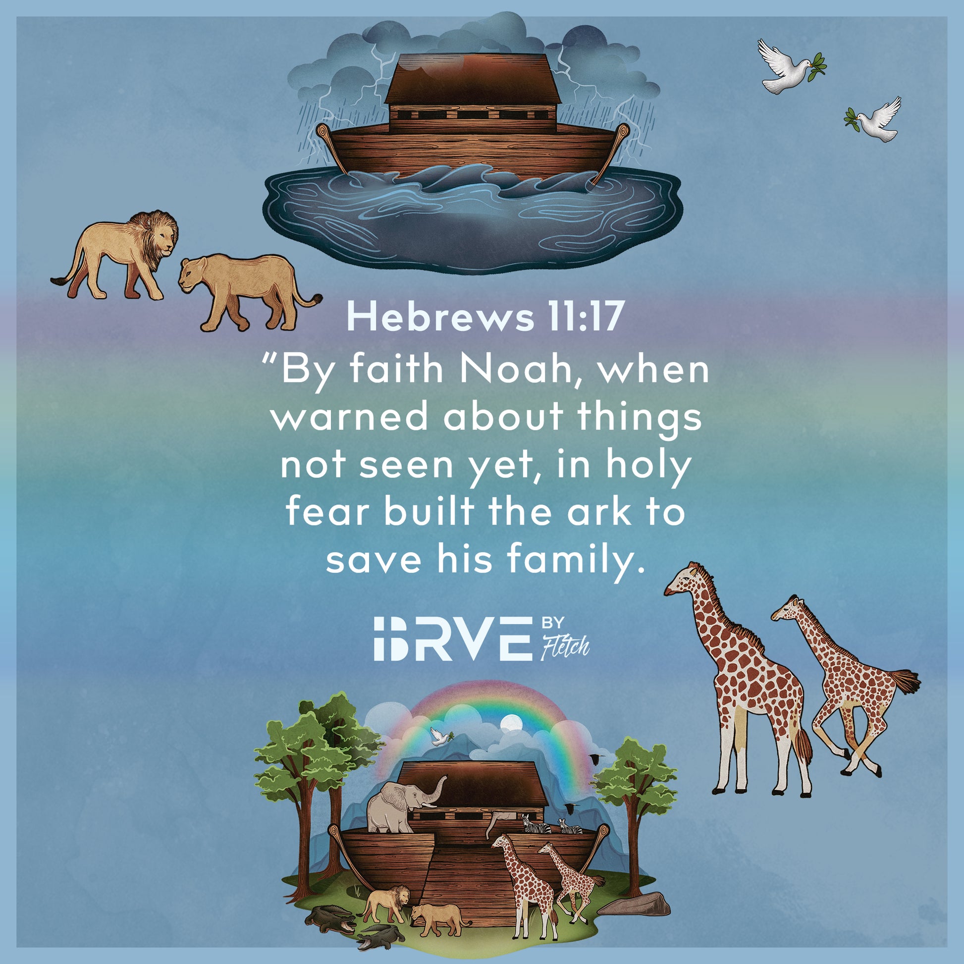 Hebrews 11:7 “By faith Noah, when warned about things not yet seen, in holy fear built an ark to save his family.